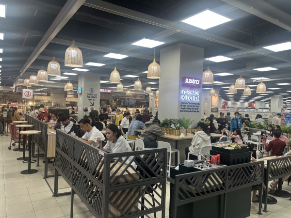 또한 베트남에서 마트 내 푸드코너 풍경은 한국과는 사뭇 다른 분위기를 보인다는 것이 특징입니다. 베트남은 집밥보다는 외식이 일반화되어 있고, 따라서 마트 내 푸드코너를 하나의 외식 공간처럼 여기는 인식도 강한 편입니다. 자리가 없을땐 바닥에 앉아서 음식을 드시는 분들도 어렵지 않게 찾아볼 수 있어요. 푸드를 통해 유입되는 트래픽도 다른 시장과 비교해 유의미하게 높은 편입니다.